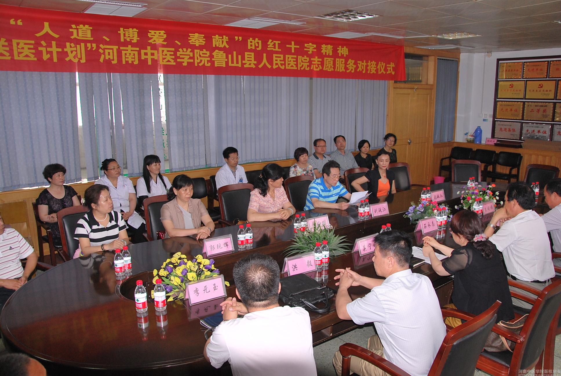 2015年6月5日至7日,我校志愿服务队和三附院志愿服务队与平顶山市鲁山县红十字送医计划对接及第一次服务活动在鲁山县人民医院举行。受党委副书记、工会主席段荣章的委托,纪委副书记刘延江、工会副主席曹蕴俐、工会办公室主任、服务队队长张婉红和三附院志愿服务专家、推拿科主任郭现辉等一行7人参加活动。