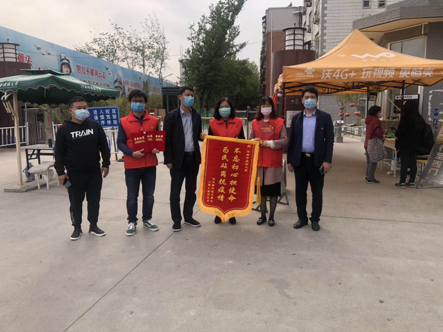 魏航主任和聂双威书记首先代表街道工委和社区人民向坚守在一线岗位,积极参与社区联防联治的我校志愿者们表示衷心感谢和真诚慰问。在中共未来路街道工委、未来路街道办事处致街道疫情防控参与单位的感谢信中写到:在习近平总书记的亲自指挥、亲自部署下,在省委、省政府,市委、市政府和区委、区政府坚强领导下,我们共同经历了一场抗击新冠肺炎疫情的严峻斗争。在未来路街道这个微战场上,大家上演了一场群防群治、联防联控、同舟共济、携手抗疫的人民战争,为打赢总体战、阻击战做出了未来贡献。信中赞扬了在共同抗疫的日子里,我校党员干部踏实肯干、真诚奉献,工作严谨、纪律严明,用实际行动绽放了光彩。其中我校党委委员、宣传部部长刘保庆,人才公寓建设与东明办党总支书记王浩然和离退休职工管理处职工苗雨因忠于职守、作风过硬、表现突出,被评为“疫情防控最美工作者”。