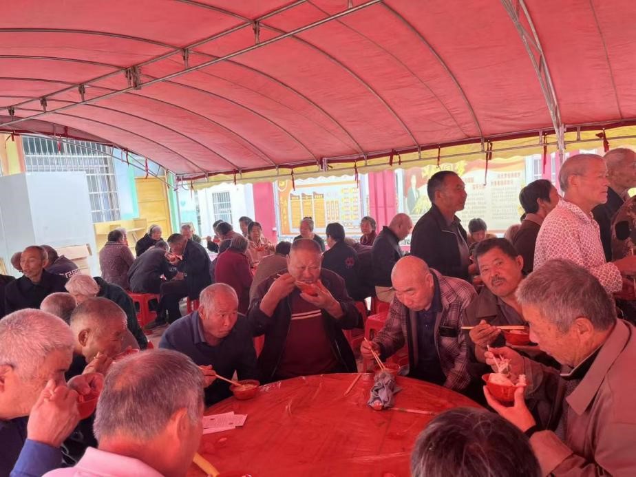工作队与村两委干部一起搭建帐篷,志愿者们分工协作、忙而有序,共同为村里老人们准备节日盛宴。老人们围坐在一起,吃着鲜香可口的饺子,脸上洋溢着幸福的笑容,共同分享今年的丰收喜悦,温馨和睦的氛围,展示了南天门村幸福和谐的村情风貌。