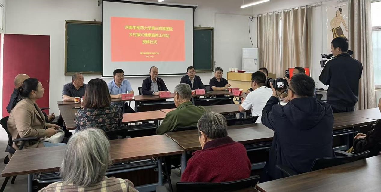 9月23日上午,我校第三附属医院乡村振兴健康宣教工作站授牌仪式在村委会多媒体教室举行。三附院党委副书记张政,党委宣传统战部主任李志刚,随队专家和瑞欣、李琳琳,赵岗乡党委书记匡辉、卫生院院长余林章,驻村工作队、村民代表等40余人参加活动。仪式由驻村第一书记孟长海主持。