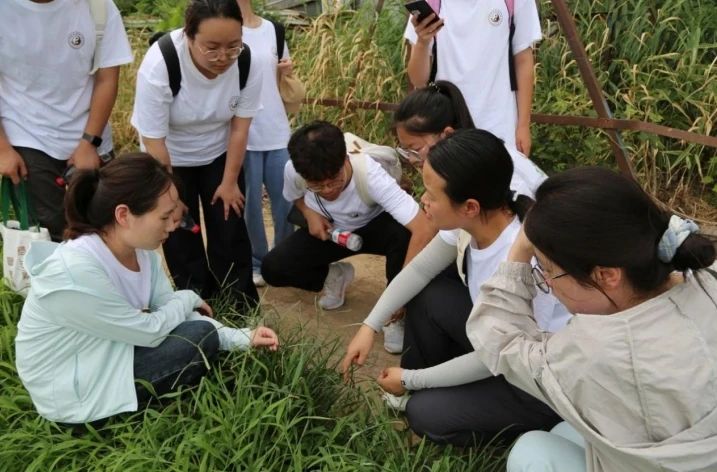 在学院领导带领下,实践队伍来到兰考县双杨树村的田间课堂,开启了中医药文化传承实践活动。带队教师陈慧亭在烈日下指导学生辨识艾草、龙葵等本土药材,讲解采挖技巧:“采药要轻挖慢取,避免损伤根茎影响药性。”学生古溢康深有感触:“亲手触摸药材,才真正理解了‘一方水土养一方药’的深意。”