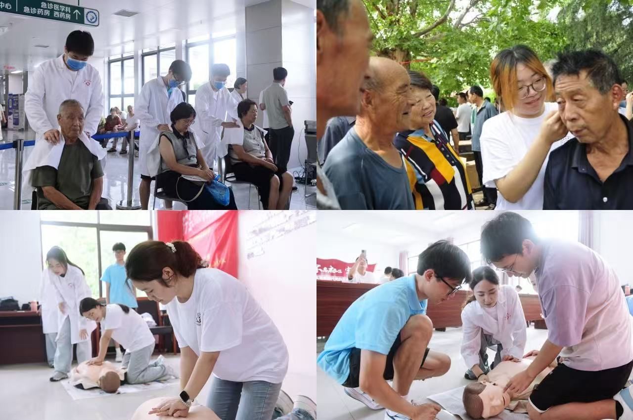 在洛宁县长水镇五福社区、马店镇马东小游园、洛宁县人民医院,实践团的师生们摆开义诊台,为村民提供血压血糖测量、骨密度检测、肩颈推拿、头部刮痧、耳穴压豆等辅助检查和中医药特色诊疗服务;为村民进行急诊急救知识培训,手把手指导村民心肺复苏操作要点,将海姆利克急救法编成通俗易记的口诀,提升基层群众急救意识和应急处置能力。义诊活动累计服务群众700余人,发放各类健康手册1200余份,开展健康宣教300余人,得到村民们的高度评价和肯定,真正把医疗服务和健康科普送到群众“家门口”,实现健康服务“零距离”。