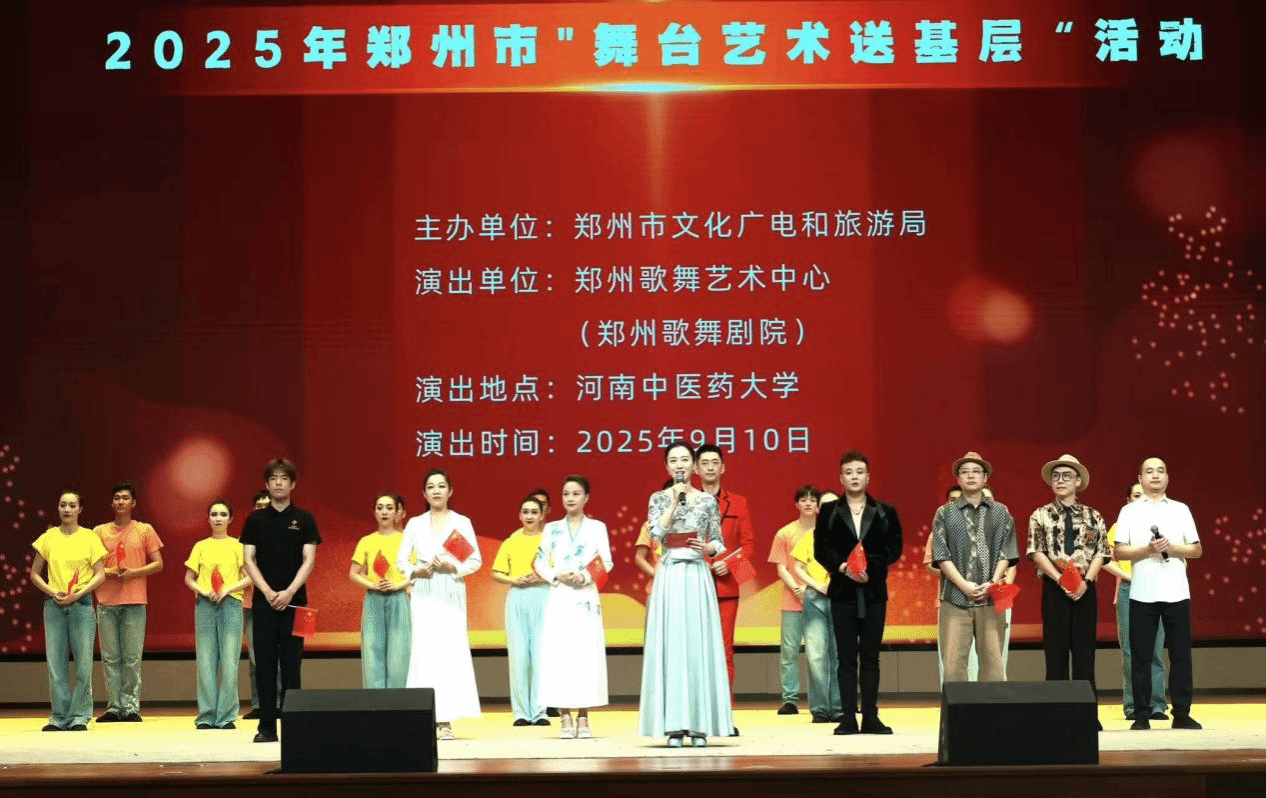 本网讯(文/高山 图/大学生新媒体中心)为进一步丰富校园文化生活,充分发挥第二课堂思政育人功能,推进高雅艺术走进校园,激励同学们传承与弘扬中华优秀传统文化,厚植家国情怀,2025年9月10日,由郑州市文化广电和旅游局主办、郑州歌舞艺术中心(郑州歌舞剧院)承演的2025年郑州市“舞台艺术送基层”活动在我校体育馆举行,我校全体新生欣赏了这场艺术演出。